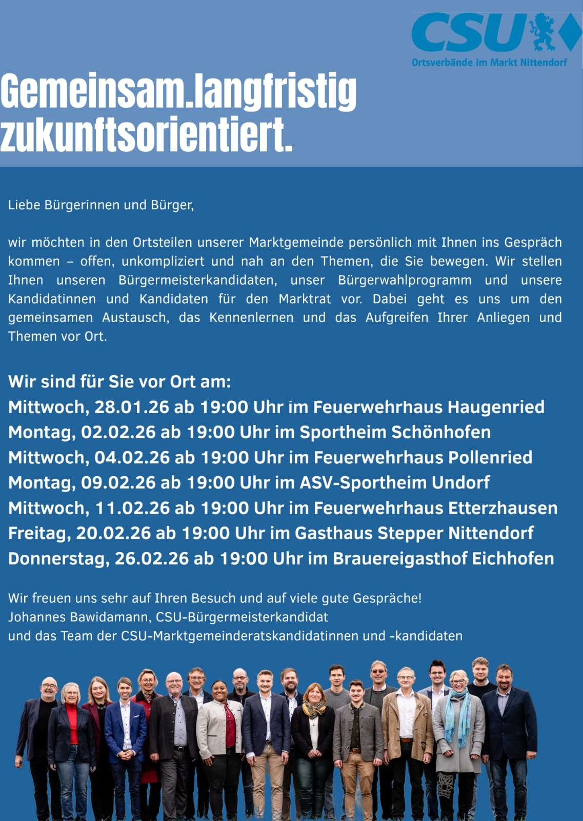 Herzliche Einladung zu unseren Wahlversammlungen