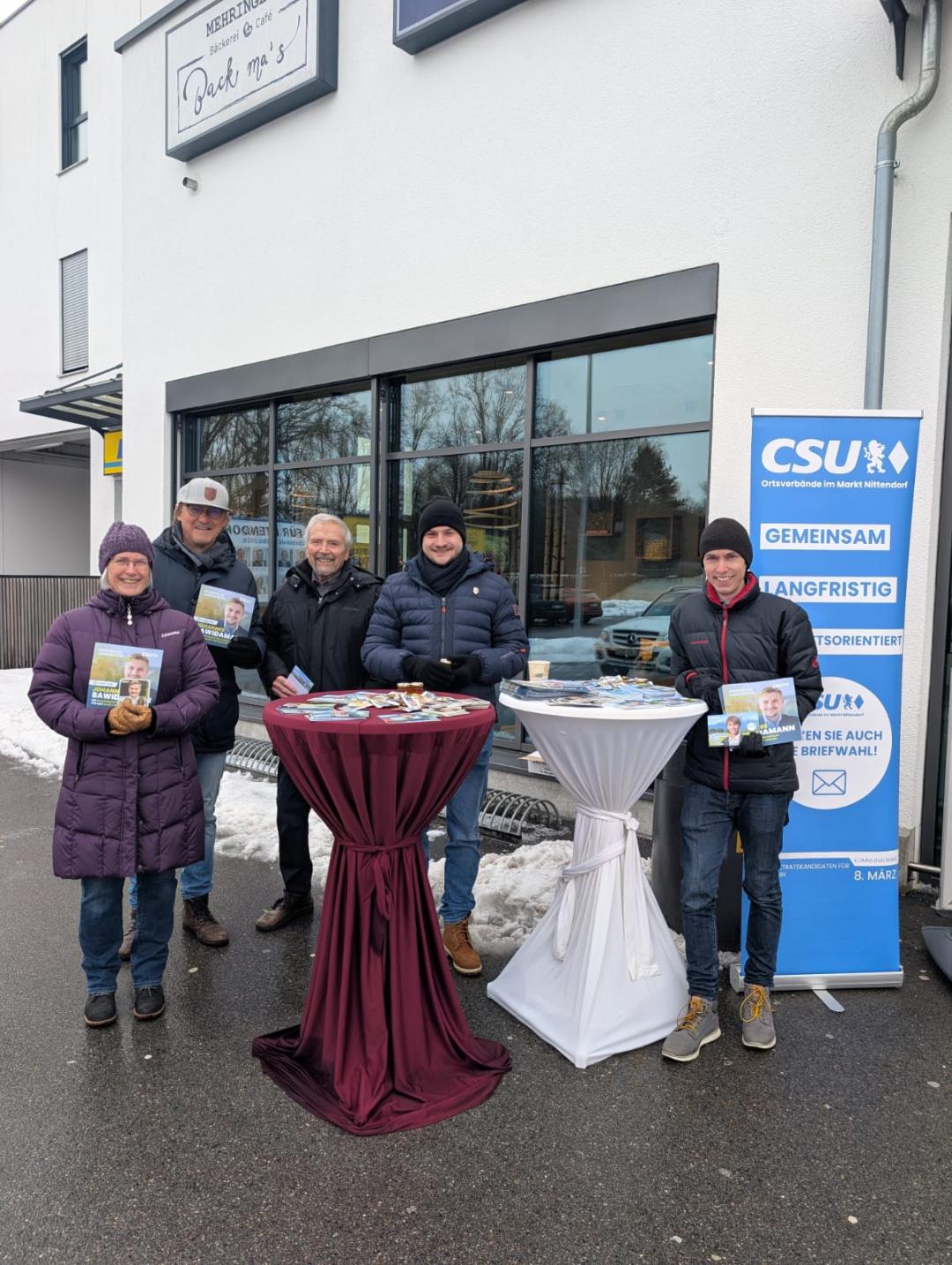 Infostand der CSU Ortsverbände vor dem Edeka Mehringer